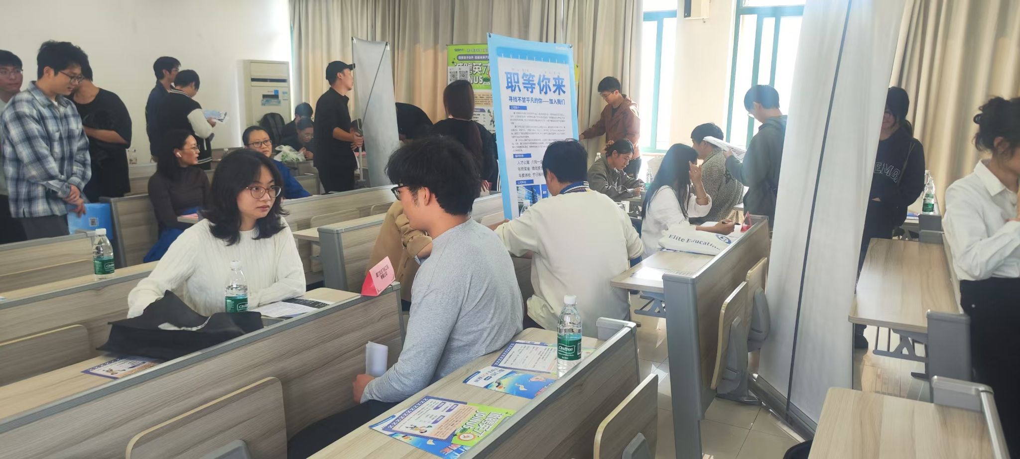 宣讲环节结束后,十家企业同步开启现场招聘,提供岗位百余个。机电2026届毕业生与企业招聘负责人面对面深入交流岗位职责、薪酬待遇、发展空间等问题。企业方耐心答疑解惑,现场收取简历并开展初步面试,活动实效显著。