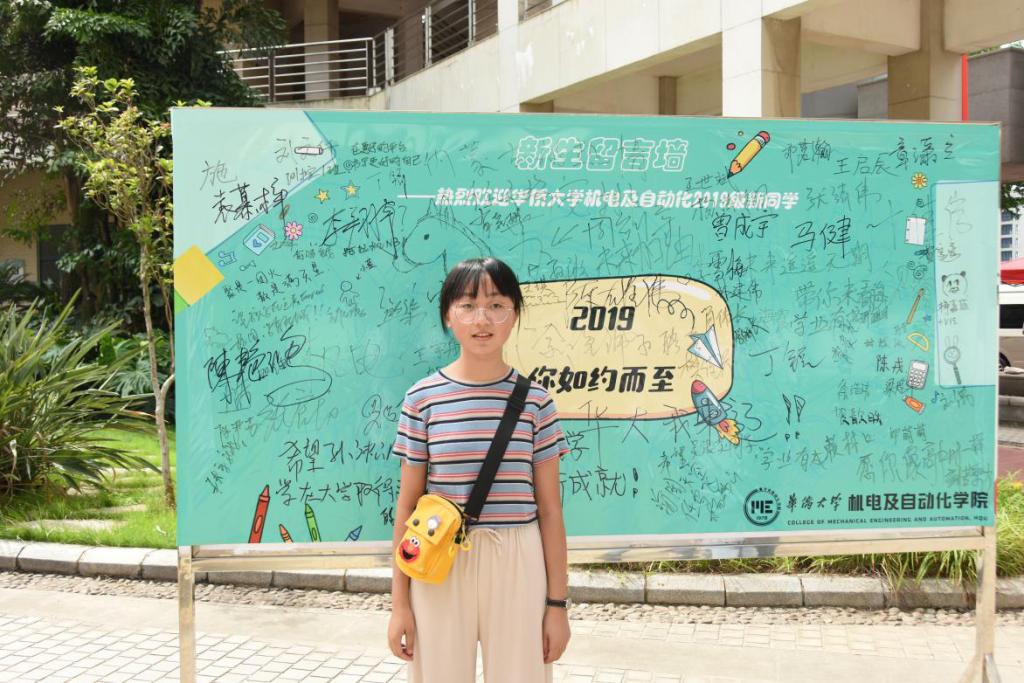 (新生在留言墙上写下寄语并合影留念)