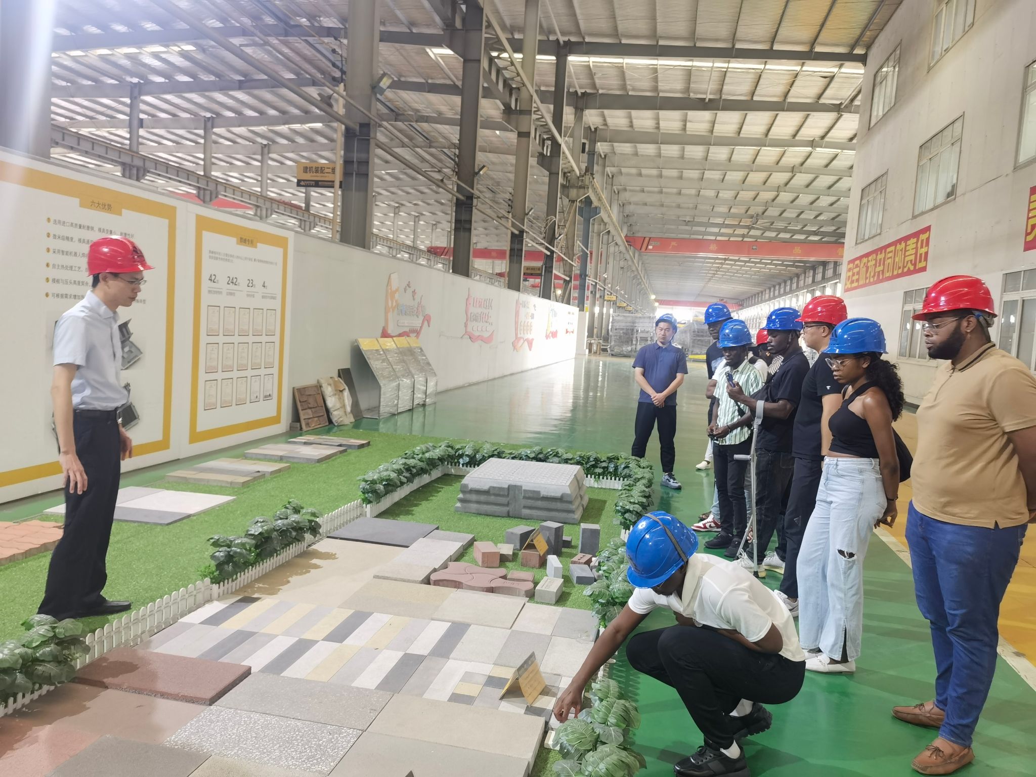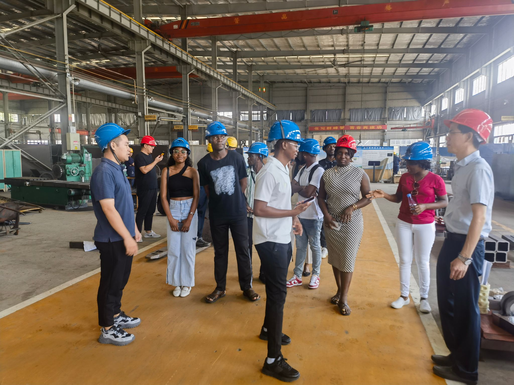 总工程师林阿勇带领来访师生一行参观了公司生产车间,进一步了解企业的主营产品、生产工艺和技术标准,重点讲解了目前在非洲板块主要产品的布局,同时在参观过程中对员工的疑问一一解答。