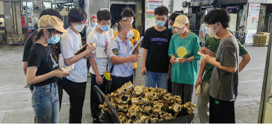 之后团队在百路达人力资源部蔡振武的带领下进行生产车间参观,员工分为五个小组,每个小组由制造中心分别安排人员进行讲解,并由安全人员维护人员安全,团队首先在一楼参观了低压铸造,铜件,锌压车间,过程中有专门的技术人员为解答同学们的问题,之后在流水车间由技术人员带领团队参观了自动研磨,电镀,组装一部,使团队对于百路达企业先进的生产技术流程以及管理系统有了深入的了解,进一步提升了团队成员的综合素质。