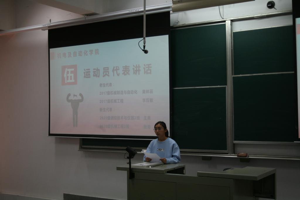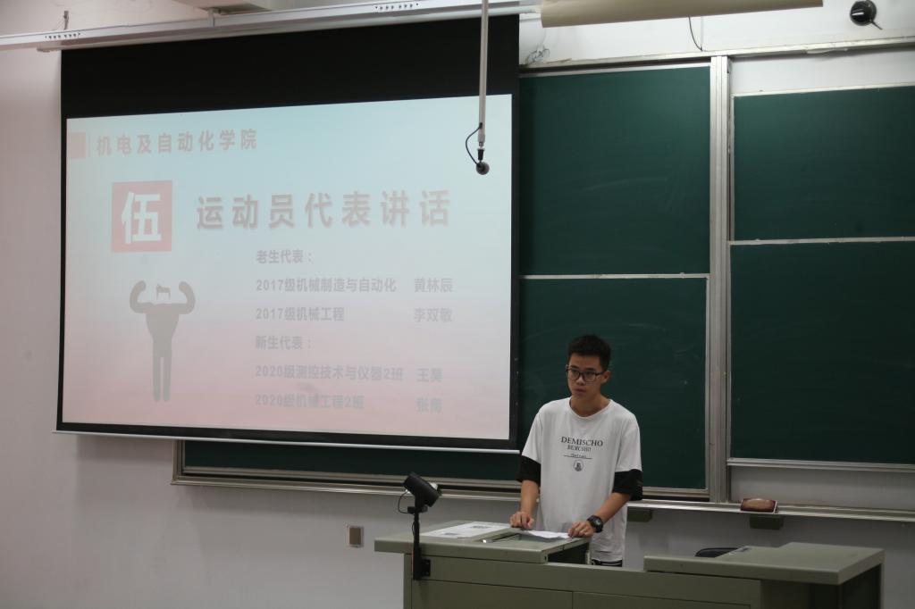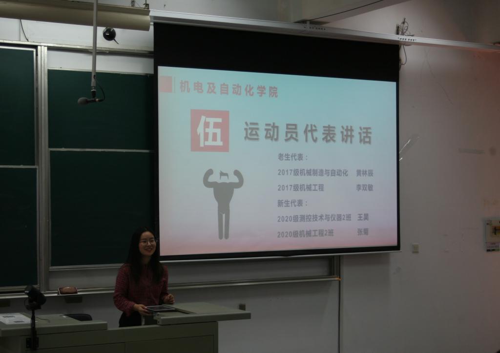 大会伊始,余桦老师对伟德国际1946官网在往届运动会取得的佳绩进行介绍,并发出号召,希望工作人员高度保持责任心,希望运动员能够以昂扬的斗志和顽强的拼搏精神赛出风采,为机电卫冕大业献力。随后,魏林平老师对运动会具体分工安排进行详细介绍,强调各部门应及时沟通,紧密配合。刘容嘉老师对体育道德风尚奖评比事项进行详细说明,并由团委副书记夏小丁介绍运动会宣传报道工作的相关事宜。紧接着,四名运动员代表依次上台发言。“如果冠军有颜色,那一定是机电红”,他们表达了对田径场的热爱和再夺桂冠的决心,全场响起热烈的掌声。大会最后,刘彬老师上台进行总结发言,他号召每一位同学尽己所能,为机电六冠王保驾护航,并预祝伟德国际1946官网在运动会中再创辉煌。