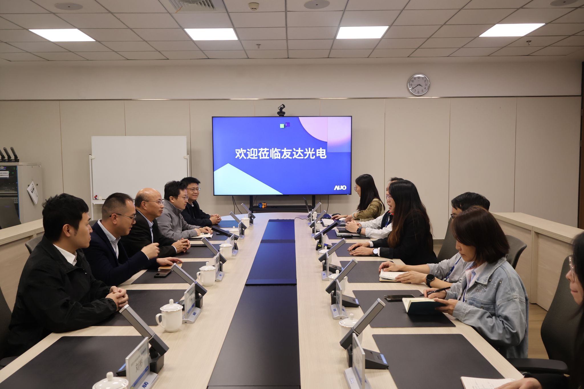 参观结束后,双方前往会议室进行座谈交流。友达光电王璐璐副理介绍了企业相关概况,指出企业产业涉及消费电子、智能出行、商业应用、智能医疗等多个领域,相关技术处于业界领先水平;伟德国际1946官网副经理张勇介绍了学院的办学特色、团队建设成果及人才培养模式,指出近年来学院在校企合作方面取得了显著成效。座谈会上,双方还围绕教学实践、实习就业、科研合作等多个方面展开了深入交流,并就未来合作方向达成初步共识。