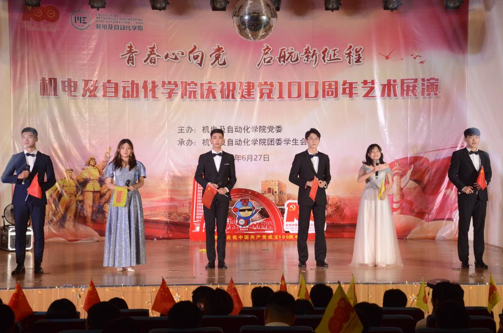 晚会在《红歌串烧》拉开序幕,娓娓动听的红色旋律让我们回忆起那段难忘的峥嵘岁月,随后是同学们带来的主题朗诵《唱支山歌给党听》,生动再现了中国共产党从诞生到壮大的光辉历程,讴歌了各族人民在中国共产党的领导下,沿着正确的方向,昂首阔步走向新征程的豪迈之情,令人震撼。而后的小提琴独奏《花儿为什么这样红》或柔婉、或激昂的旋律一下子带大家回到了《冰山上的来客》的影视片段中,同时在《中国书法展示》中公司两位学子也在提琴声中亲手写下了院训“博学 笃志 切问 近思”以及“奋斗百年 启航新途”两个书法作品。此外,讲述抗疫医生和人民子弟兵的主题舞蹈《疫晴》、汉服展示搭配器乐合奏的《江南》也为我们带来了视听盛宴。本次晚会还加入了互动答题和随机采访环节,除了《党史知识答题》以外,《机电知多少》环节更是让大家重温了伟德国际1946官网挂牌成立20周年以来机械学科的大事记,充实了整场晚会的效果。