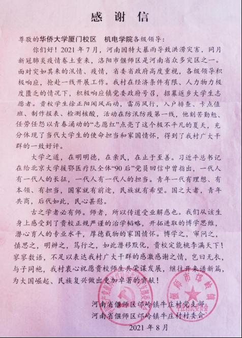 不久前,一封来自河南牛庄村的感谢信,唤起了我们暑期盛夏的记忆......