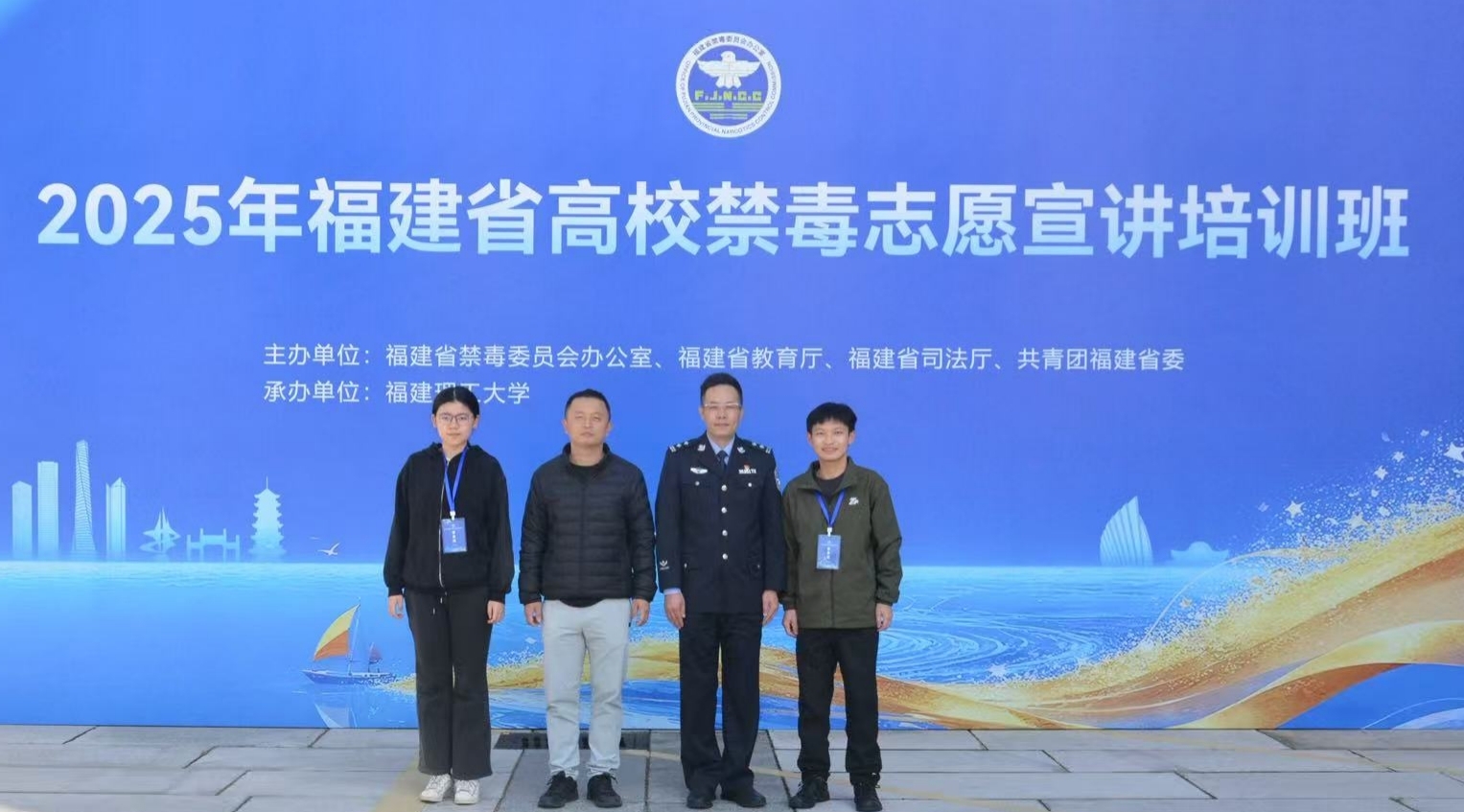 为深入学习贯彻习近平总书记关于禁毒工作的重要指示精神,进一步筑牢校园禁毒防线,加强禁毒社会化工作,11月18日至21日,福建省禁毒委员会办公室、教育厅、司法厅和共青团福建省委员会在福州联合举办全省高校禁毒志愿宣讲培训班暨首届老员工禁毒文化艺术节。公司辅导员陈炜老师、“机”心铸盾,“电”语护航——华大禁毒宣讲小分队入选福建省级高校禁毒志愿宣讲团,陈炜及宣讲团队代表23级本科生许莹莹参加上述活动。