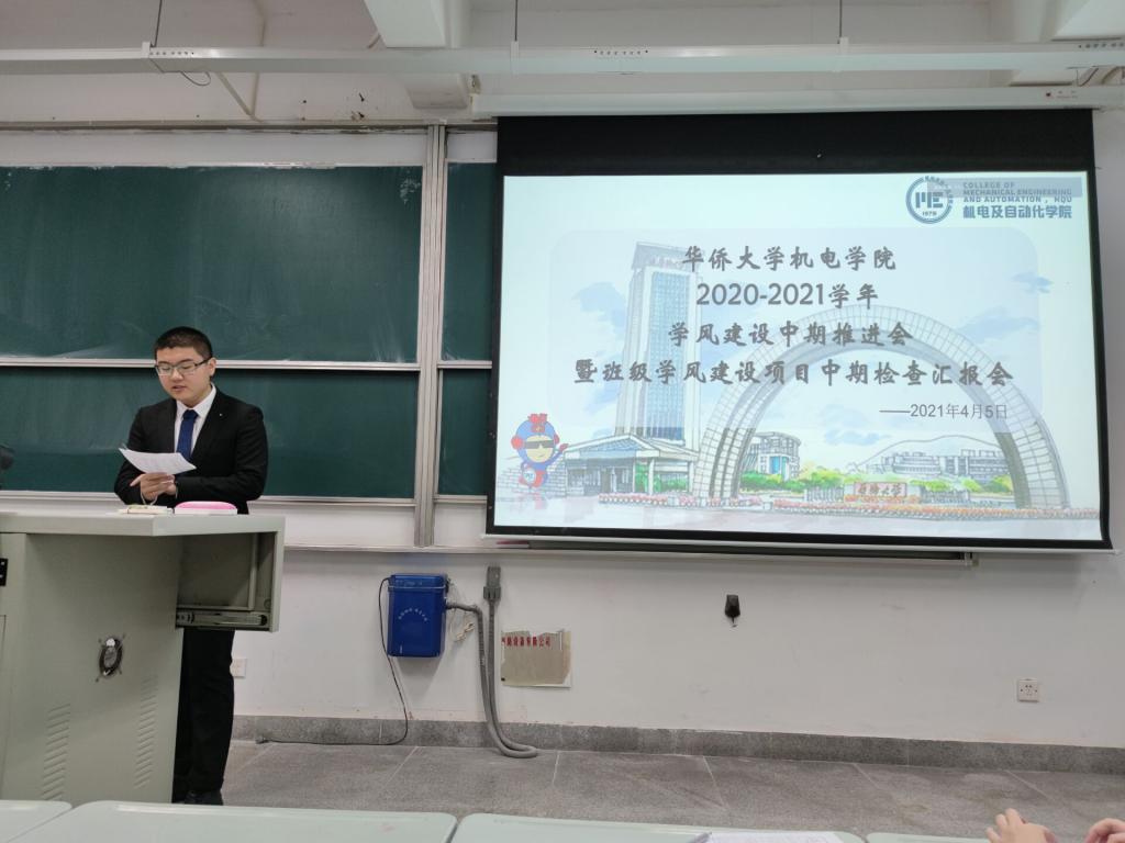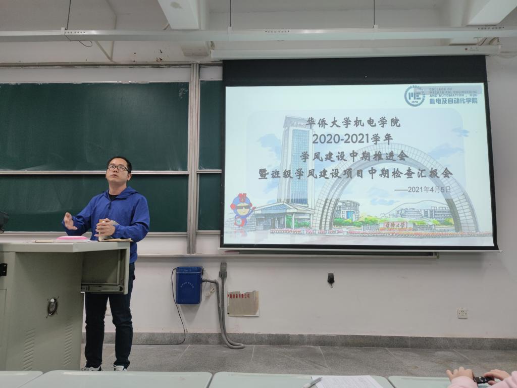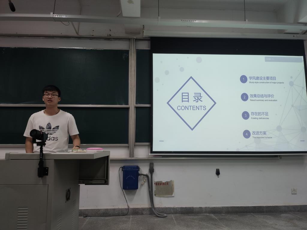 最后,余桦老师上台做总结发言,对各班级上学期开展的学风建设立项活动取得的成绩表示肯定,同时也指出了目前学风建设存在的问题及下一步重点工作方向。他强调各班级学风建设应加强三方面的工作:一是以更高的站位认识、更强的责任感和紧迫感开展学风建设;二是坚持问题导向,重点解决学风建设长期存在的问题;三是以创新思维开展学风建设。要以生涯发展为主线,将学风建设贯穿四年大学学习生活始终。他还指出:“各年级各班级要根据本班的实际情况有重点地开展学风建设即‘大一关注学业适应、大二大三关注能力发展、大四关注毕业就业’。积极思考探索学风建设的创新方式,拓展学风建设外延和内涵,要将专业引导与实践、科创、综合能力的提升、考研以及就业创业等方面结合起来,持续推进学风建设,为学院创建‘双一流’团队建设打下坚实基础”。