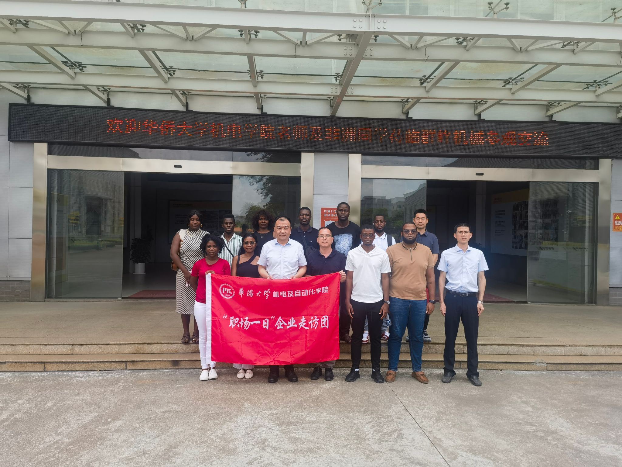 7月16日上午,伟德国际1946官网组织非洲职工深入群峰智能机械有限公司走访。学工办主任余桦老师、就业辅导员魏林平老师以及来自伟德国际1946官网、信息学院和土木学院的10名非洲职工共同参与了本次“职场一日”企业走访。