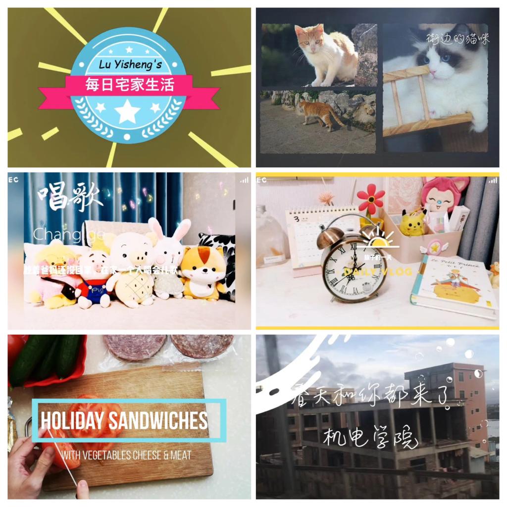 经过七天的作品征集,共有13个作品参加本次比赛。作品大致可分为学习篇、记录篇、美食篇、艺术篇、运动篇、风景篇六个主题,透过同学们精彩的作品,我们品味着春天里的盎然春意,感慨于平凡生活中点点滴滴的美好,枯燥的居家生活在同学们的镜头下变得生动鲜活。经由评委初审及三天的线上投票后,卢逸晟同学的《每日宅家生活》、葛艺超同学的《周末》、刘天琪同学的《小日常》三篇作品脱颖而出,获得了此次比赛的最佳人气奖。