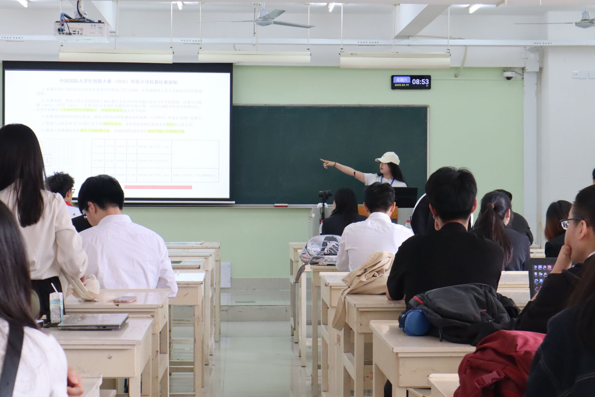选拔赛采用“6分钟项目路演+5分钟答辩”赛制。来自17个学院的52支团队晋级校赛,涵盖智能制造、乡村振兴、文化传承等多领域。各团队通过PPT演示、视频展播及实物展示,从技术创新、实践成果、团队协作、市场前景等维度全方位呈现项目亮点。组委会邀请校内外专家学者组成评审团,围绕教育维度、创新维度、团队维度、商业维度、社会价值维度、发展维度等进行综合评分,并在答辩环节为项目优化提供指导建议。当天下午,组委会组织大赛集训营活动,邀请专家对项目进行再指导、再打磨、再提升。