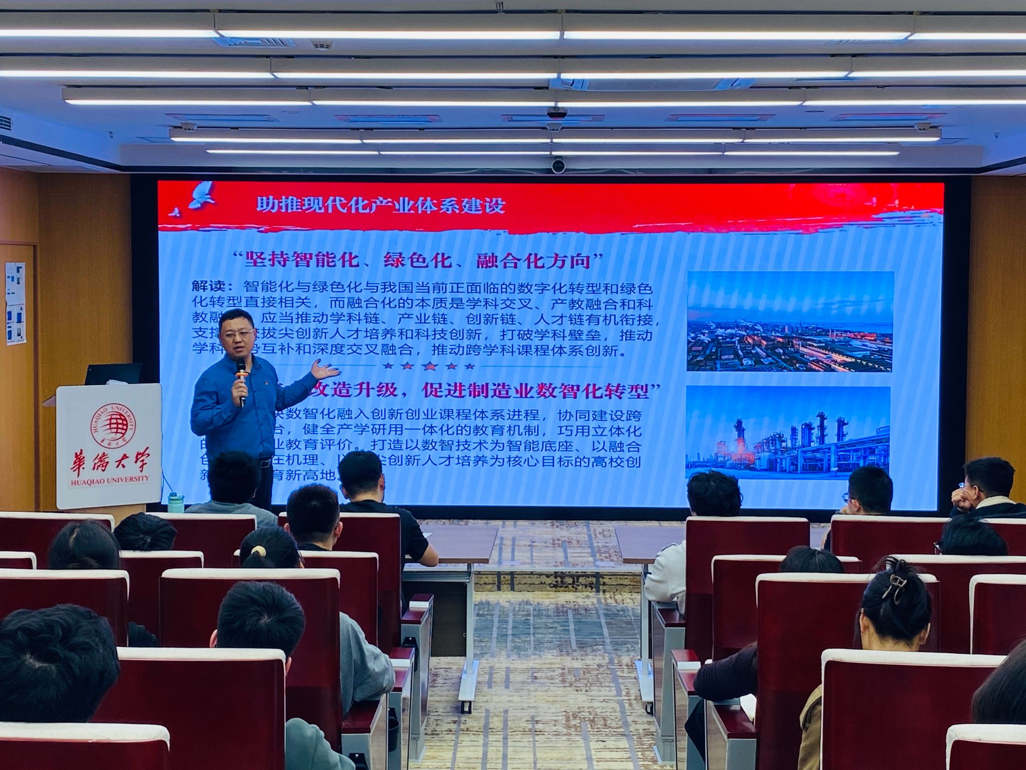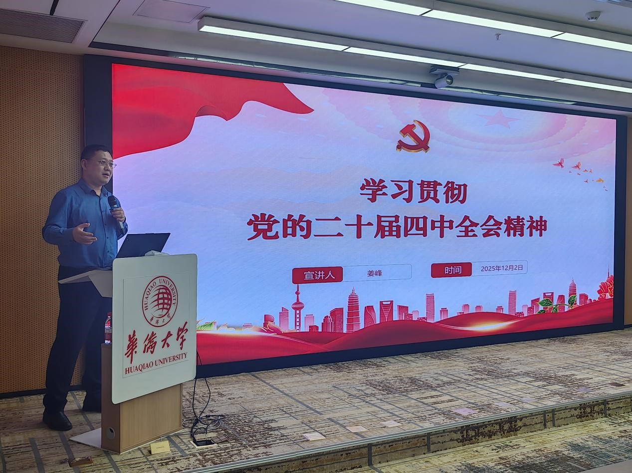 为深入学习贯彻党的二十届四中全会精神,切实把全院师生的思想和行动统一到党中央决策部署上来,12月2日晚,公司党委委员、副经理姜峰在综合实验大楼A316报告厅讲授学习贯彻党的二十届四中全会精神专题党课。“海丝智造”研究生创新团队党支部、博士研究生第二党支部、研究生第七党支部党员、入党积极分子80余人与会。