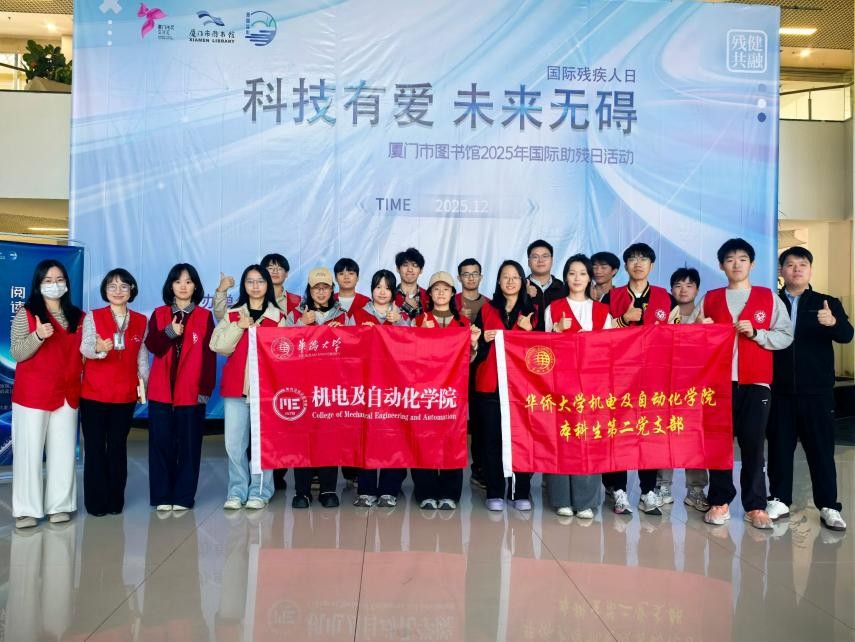 12月6日,本科生第二党支部组织全体党员与入党积极分子代表,前往厦门市图书馆参加“科技有爱,未来无碍”科技助残公益活动,承担现场引导、设备体验协助与沙龙支持等志愿服务,以实际行动诠释奉献精神。