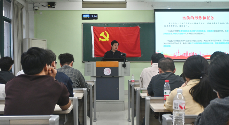 党课上,张勇首先对党的二十届四中全会的基本情况进行了系统梳理,结合“十四五”时期我国在经济实力、科技实力和综合国力方面取得的辉煌成就,深入分析了当前面临的机遇与挑战。他通过列举新能源汽车产业爆发式增长、国产电磁航母下水等生动案例,指出我国虽然面临复杂多变的国际形势和外部遏制,但拥有显著的制度优势、超大规模的市场优势、完备的产业体系优势以及基于高等教育发展形成的人才优势。他强调,要深刻理解全会提出的以经济建设为中心、以推动高质量发展为主题、以改革创新为根本动力等核心要求,坚持党的全面领导,统筹发展和安全,坚定不移走中国式现代化道路。