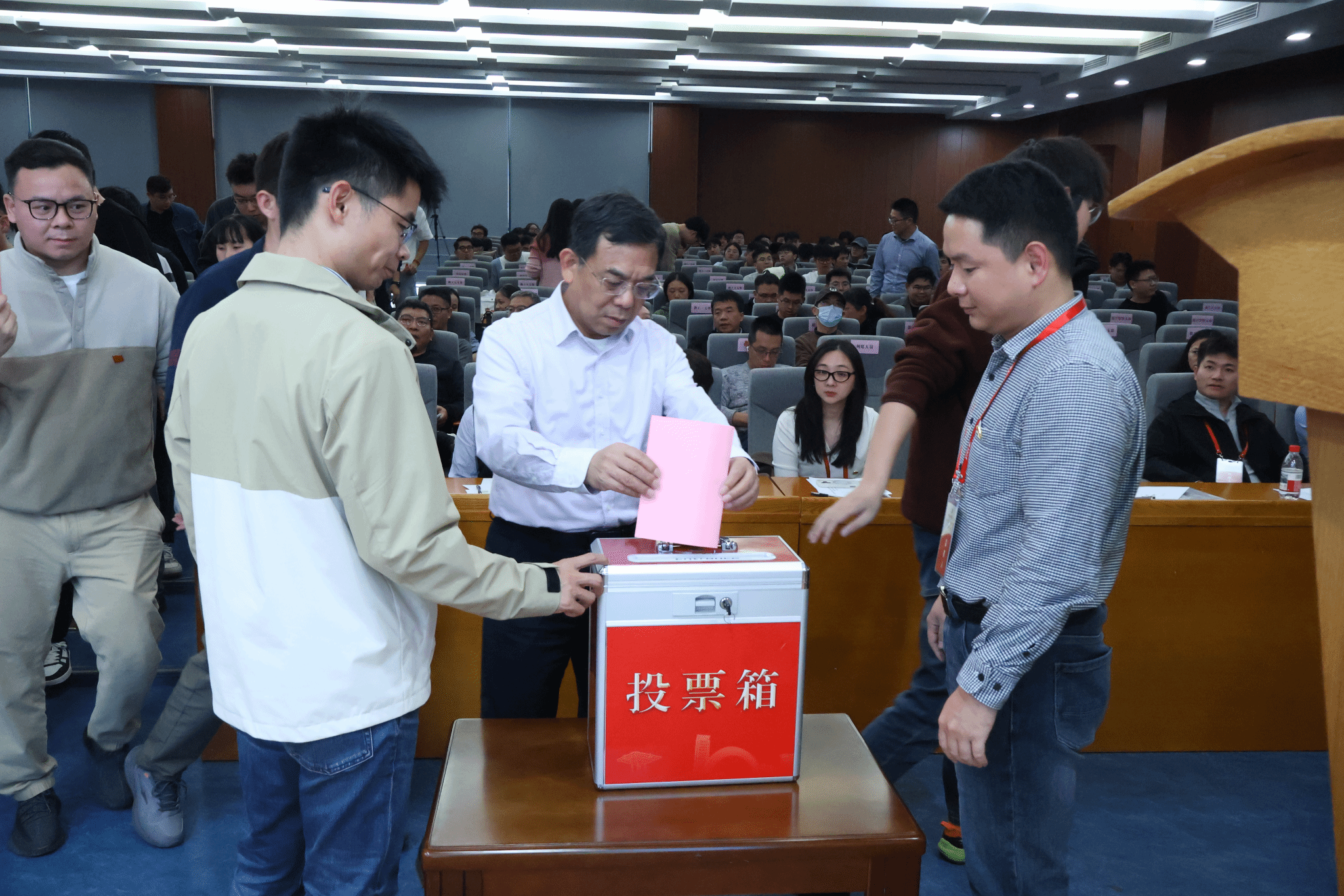 选举过程中,工作人员当场检查票箱、分发选票,并详细说明填写选票的注意事项。经清点确认选票有效后,计票人在监票人监督下进行票数统计,总监票人向大会报告选举结果。最终,大会以无记名投票、直接差额选举的方式,选举产生了新一届党委委员会, 王霏、余桦、张灯、张勇、姜峰、涂然、黄国钦(以姓氏笔画为序)7名同志当选新一届党委委员。