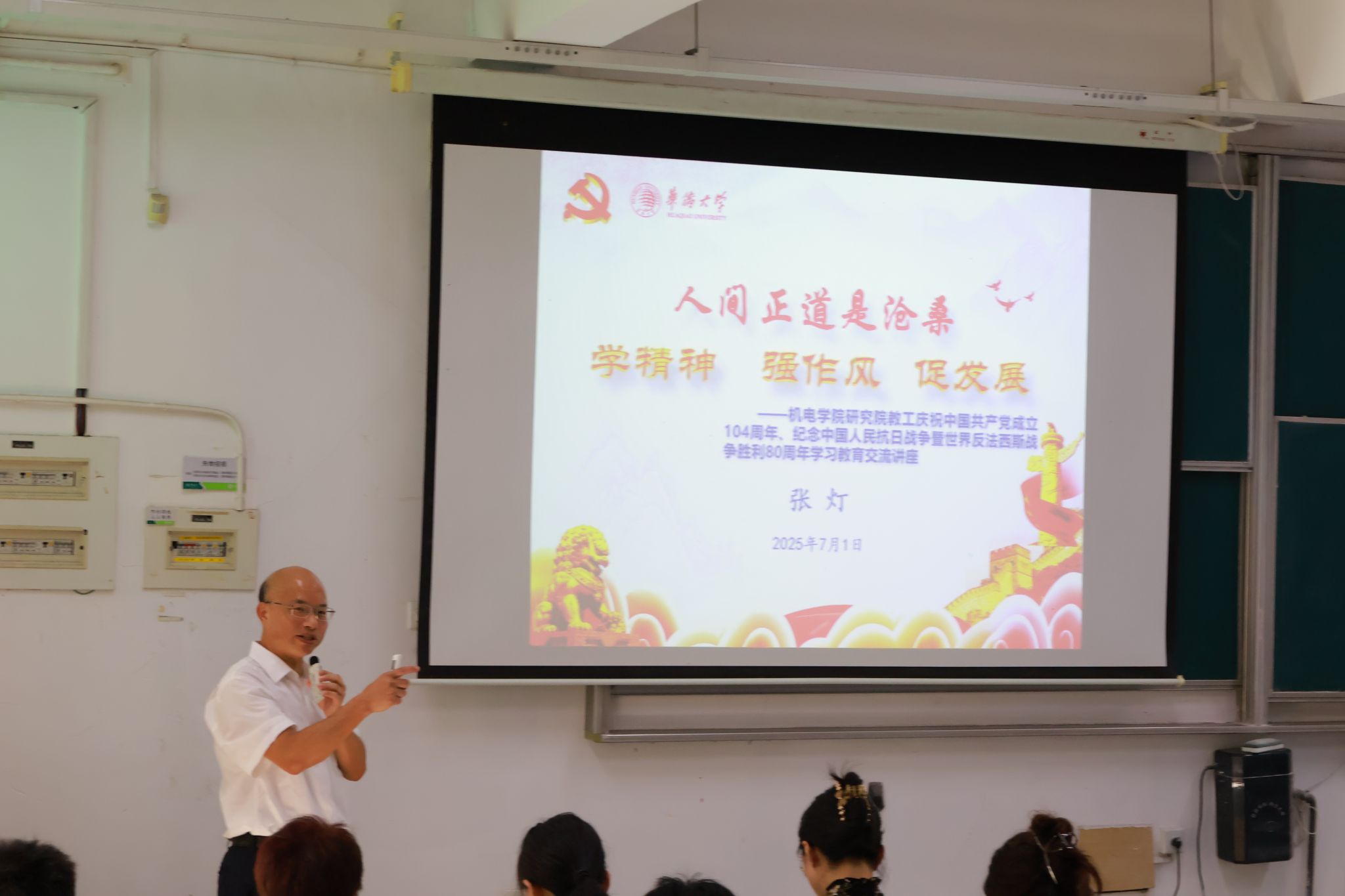 为庆祝中国共产党成立104周年、中国人民抗日战争暨世界反法西斯战争胜利80周年,推进深入贯彻中央八项规定精神学习教育,7月1日下午,公司党委书记张灯以“人间正道是沧桑——学精神,强作风,促发展”为题为全体教师党员讲授“七一”专题党课。