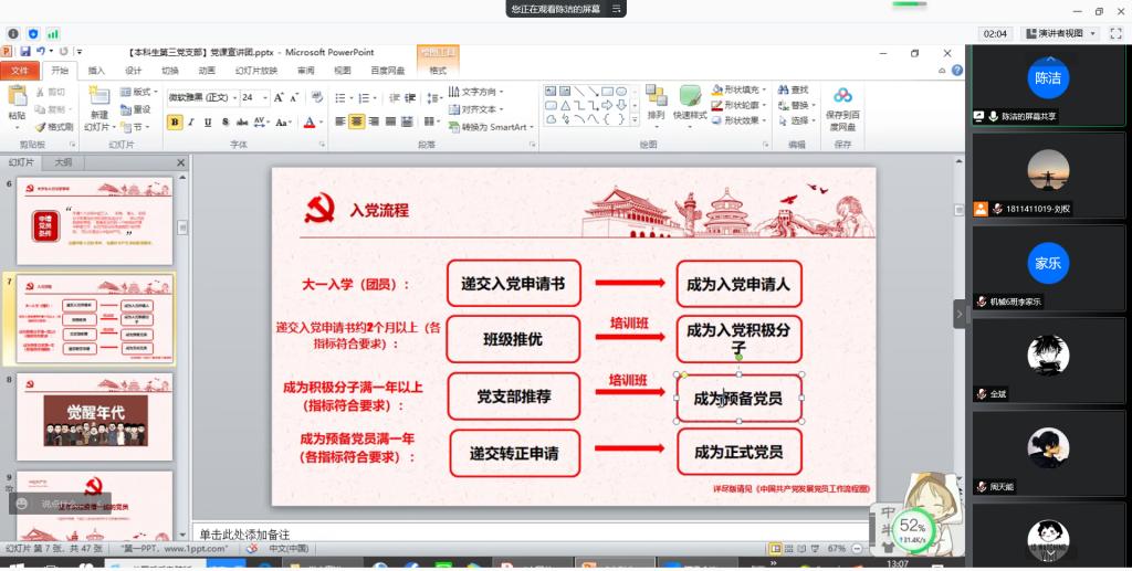 为加强新生对党的认识,提高员工思想觉悟,强化老员工理想信念教育,引导员工积极向党组织靠拢,继支部书记刘彬开学初给21级新生进行入党启蒙和党史学习教育之后,10月12日下午,本科生第三党支部面向支部所辖21级新生开展线上入党启蒙与党史宣讲活动。