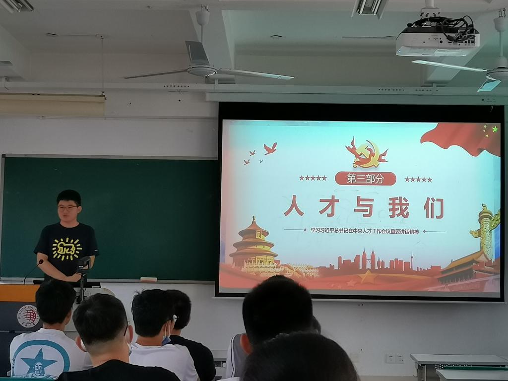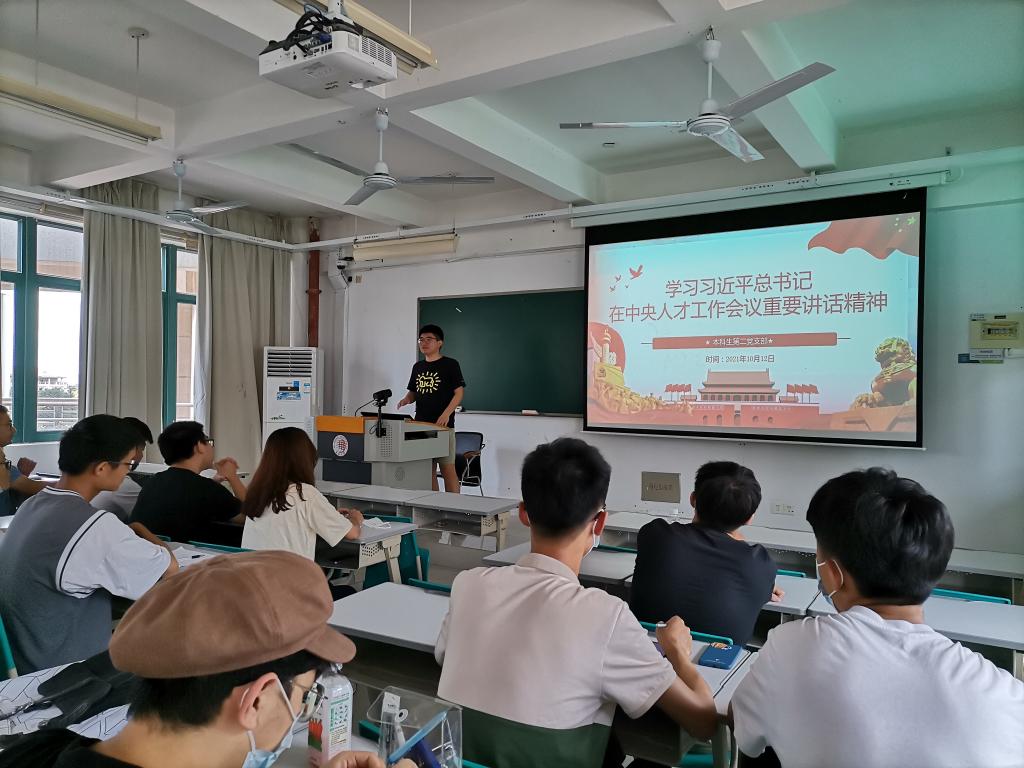 10月12日下午,本科生第二党支部在综合教学楼群C1-304教室开展深入学习习近平总书记在中央人才工作会议重要讲话精神专题会议。