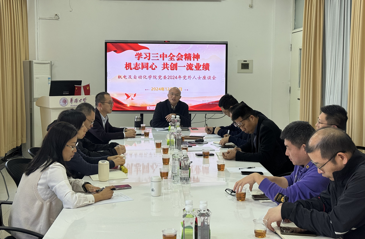 12月13日上午,公司党委在学院会议室召开2024年党外人士座谈会,传达中共二十届三中全会精神,通报机械工程一流团队建设进展,并就共创一流业绩展开研讨。公司党委书记张灯,党委统战委员、副经理姜峰,党委副书记余桦,各民主党派、无党派人士等党外人士代表与会。