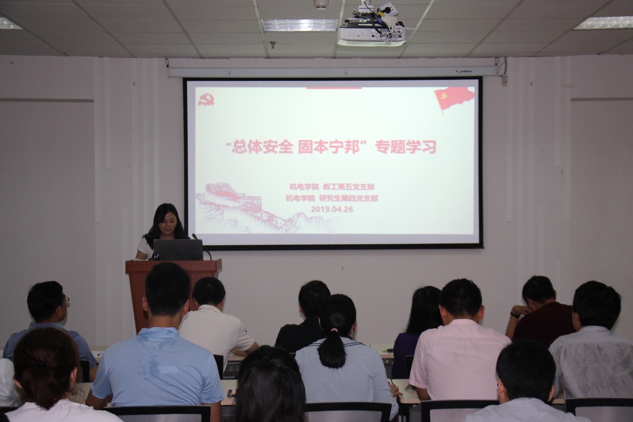 4月15日是我国的全民国家安全教育日。为了让广大师生党员学习了解国家安全相关知识,增强国家总体安全意识,自觉树立维护国家总体安全的意识,并落实到行动中去。4月26日上午,伟德国际1946官网教工第五党支部和研究生第四党支部一起,在机电信息实验大楼B247组织观看了《总体安全 固本宁邦》专题节目。