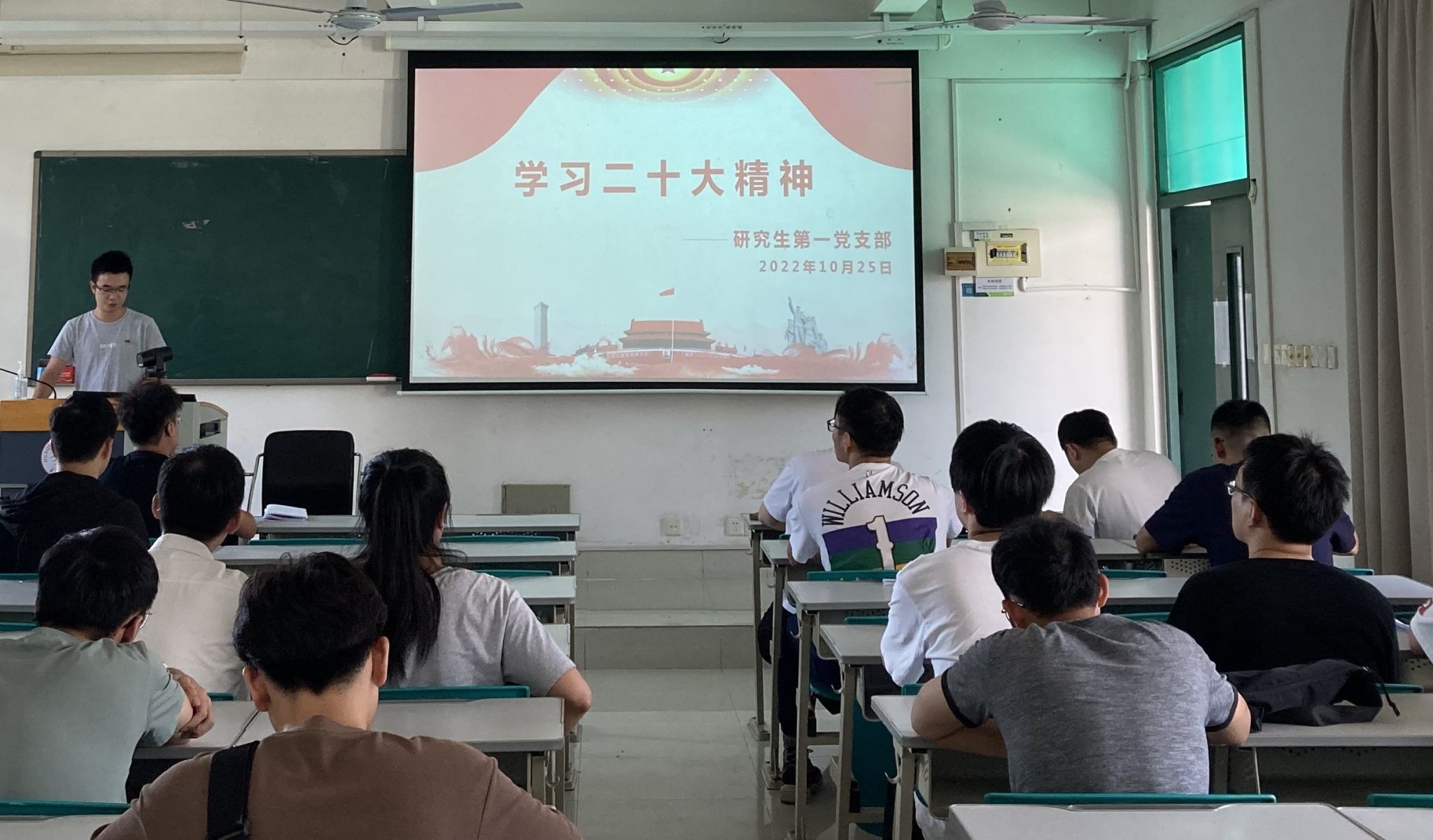 10月25日下午,研究生第一党支部在综合教学楼群C1-302教室举行“学习党的二十大精神”主题党日活动。活动由支部副书记张守铭主持,支部全体党员与会。