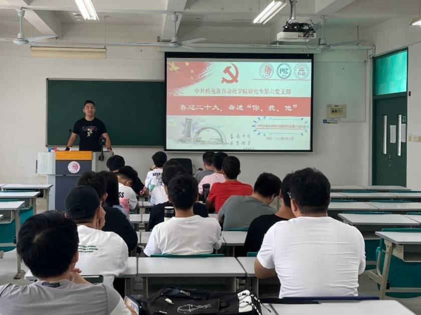 为迎接党的二十大胜利召开,激励党员同志不忘初心跟党走,9月28日上午,研究生第六党支部在综合教学楼群C1-301教室开展“喜迎二十大,奋进你我他”主题党日活动,活动由支部书记申春雨主持。