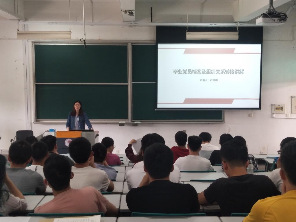 在2019届毕业生即将离校之际,为了确保毕业生党员组织关系的顺利接转、做好毕业生党员离校工作,公司党委于5月14日上午,在教学群楼C4-202召开全体毕业生党员大会,会议由辅导员许燕群主持,学工办主任余桦也出席了本次会议。