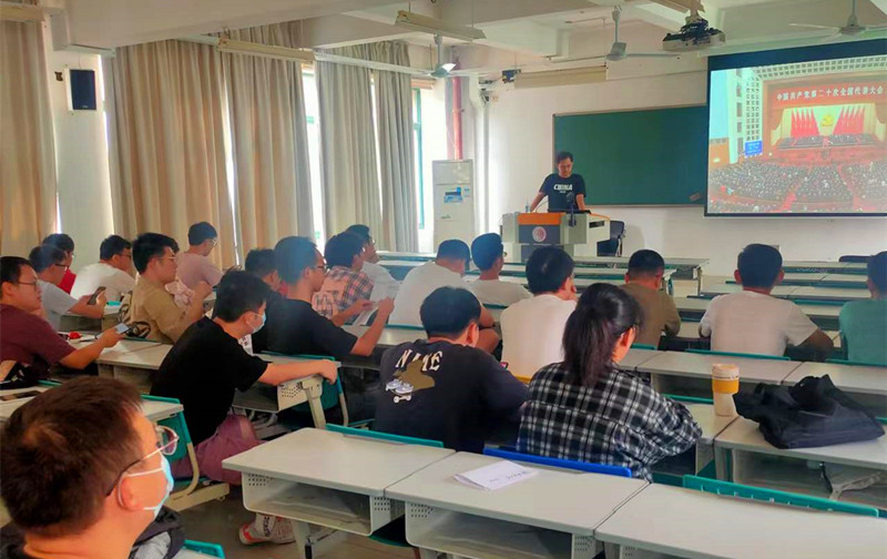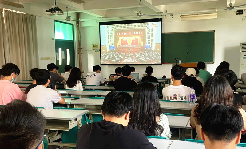 党建办主任余翔表示,收看了党的二十大开幕会,内心备受鼓舞。在新时代新征程上,作为一名员工党员,一定学好专业知识,提升专业本领,坚定不移听党话,跟党走,为全面推进中华民族伟大复兴奉献青春力量。本科生第二党支部预备党员赖志嵩表示,新时代的伟大成就,是党和人民一起拼出来的。我们老员工应当像先辈一样,用心中热血浇筑崭新中华,以青春之我贡献新的百年征程。作为一名预备党员,我满怀信心,我相信在中国共产党的带领下,华夏盛世永不落幕,中国的未来一片光明!