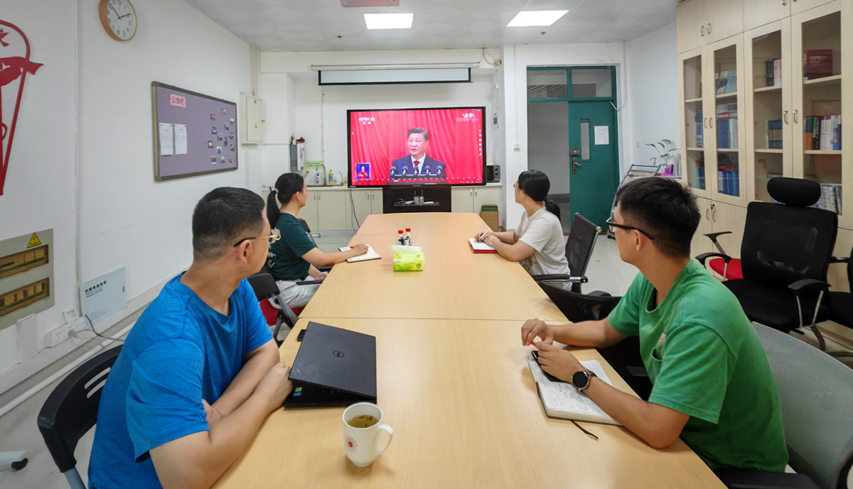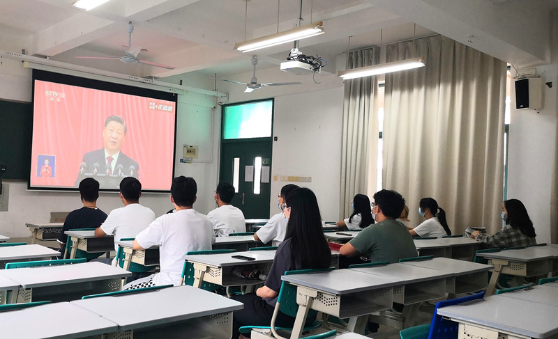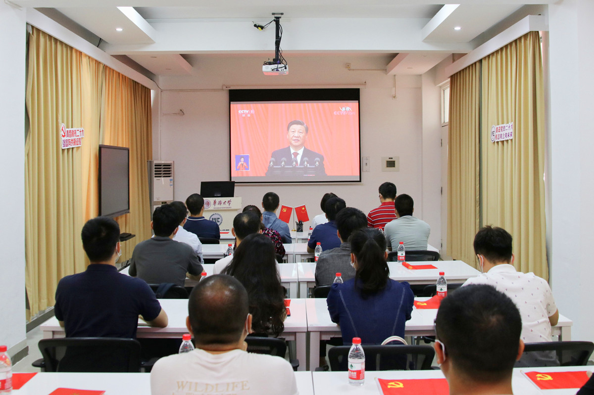 大家认真聆听、学习、热议习近平总书记的报告。公司党委委员、全国党建工作样板支部——教工第五党支部书记黄国钦表示,习近平总书记在报告中强调了教育、科技、人才是全面建设社会主义现代化国家的基础性、战略性支撑。“作为华侨高等学府的一名教师,我们要全面贯彻党的教育方针,落实立德树人根本任务,立足侨校特色,既要培养德智体美劳全面发展的社会主义建设者和接班人,也要培养知华友华的‘民心相通的使者’,促进中外文化文明交流互鉴。同时,要推动学院提升助力实现高水平科技自立自强,以及服务国家、地方重大战略问题的科技创新能力和人才培养实效。”
