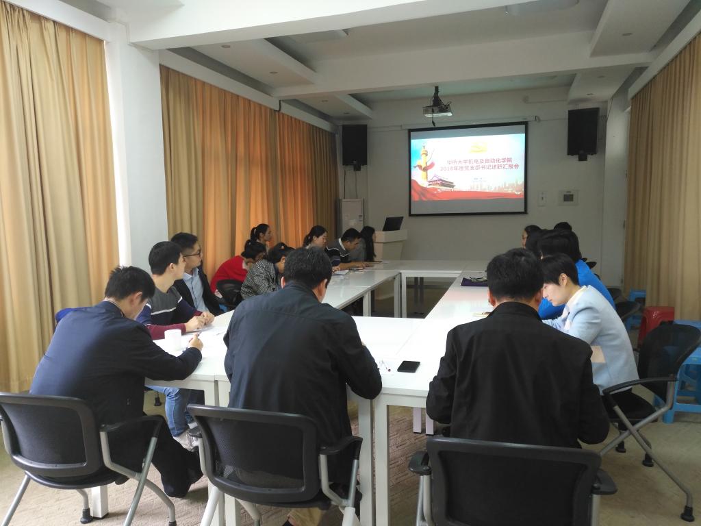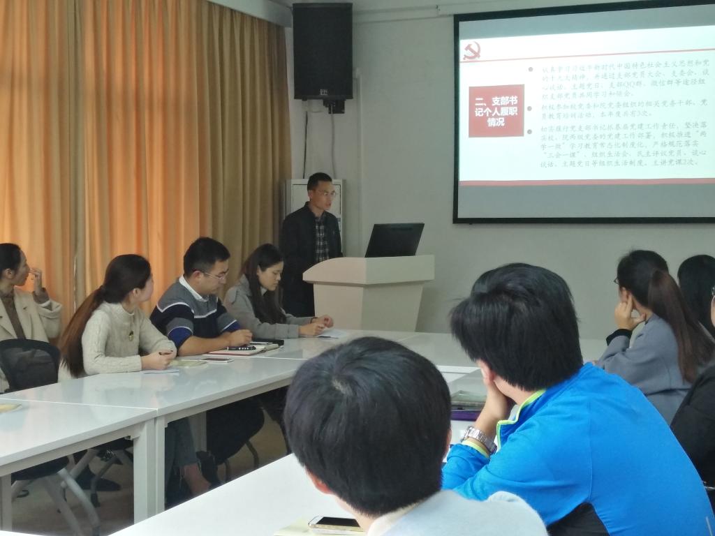 首先,谢书记介绍了党支部书记述职工作的总体要求,以及奖优罚劣的具体举措。随后,各教工党支部和员工党支部书记按顺序从支部概况、个人履职情况、党支部建设情况和成效、思想政治工作情况、党支部建设存在问题和加强改进工作的思路措施等方面对过去一年的工作和新一年的工作构想进行了全面的汇报。党委委员认真听取了各位支部书记的汇报并进行了细致的点评,提出了工作的要求。本次汇报评审会共12位党支部书记参与了述职,经民主测评和党委委员审议决定,评为“好”的党支部书记有3位,分别为黄身桂、黄国钦、郭伟斌,评为“较好”的党支部书记9位。