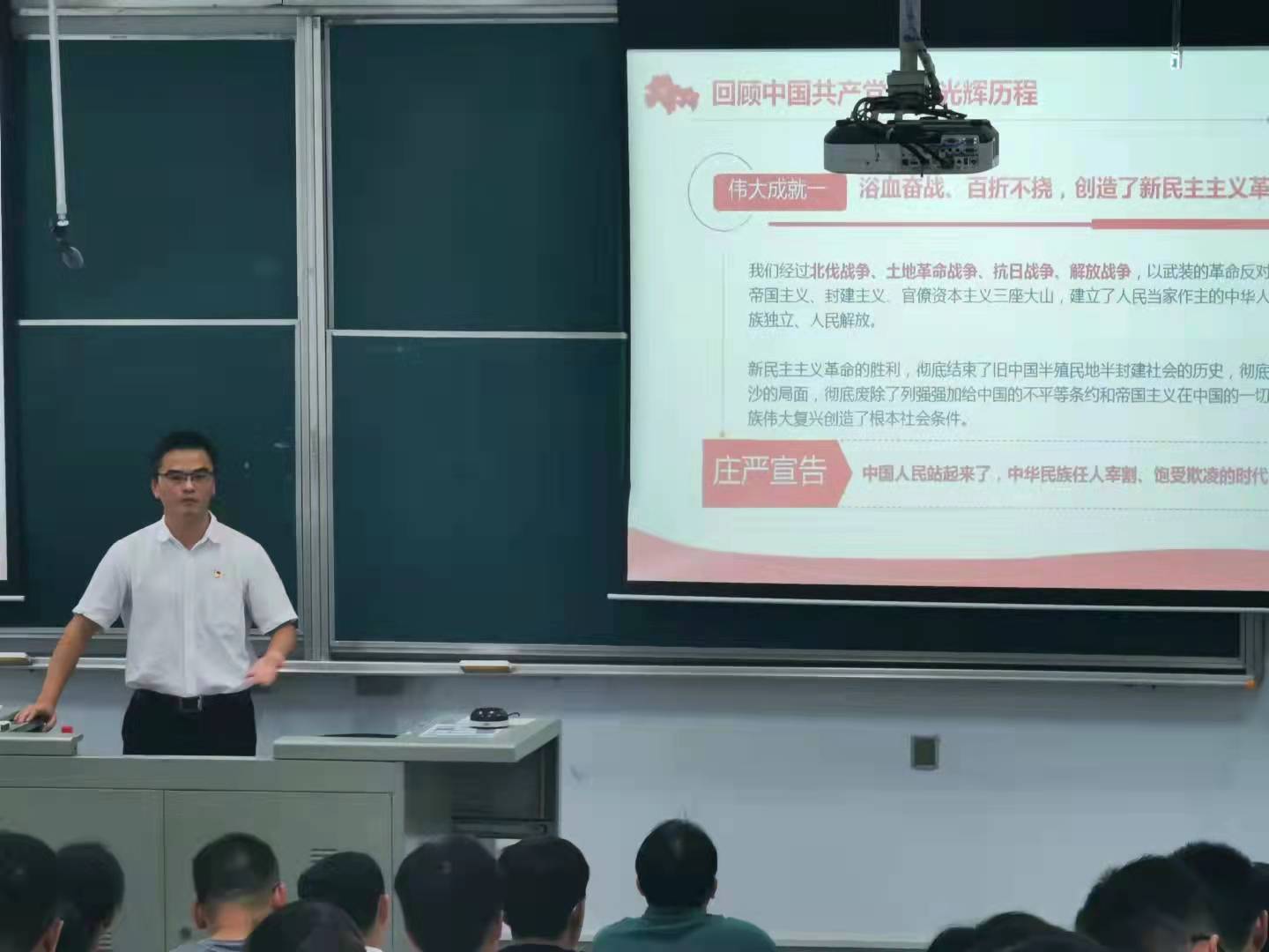 9月7日下午,公司党委委员黄国钦在综合教学楼群D5-203教室为员工党员上党史学习教育专题党课,解读习近平总书记“七一”重要讲话精神,伟德国际1946官网本科生、研究生各支部员工党员逾百人与会。