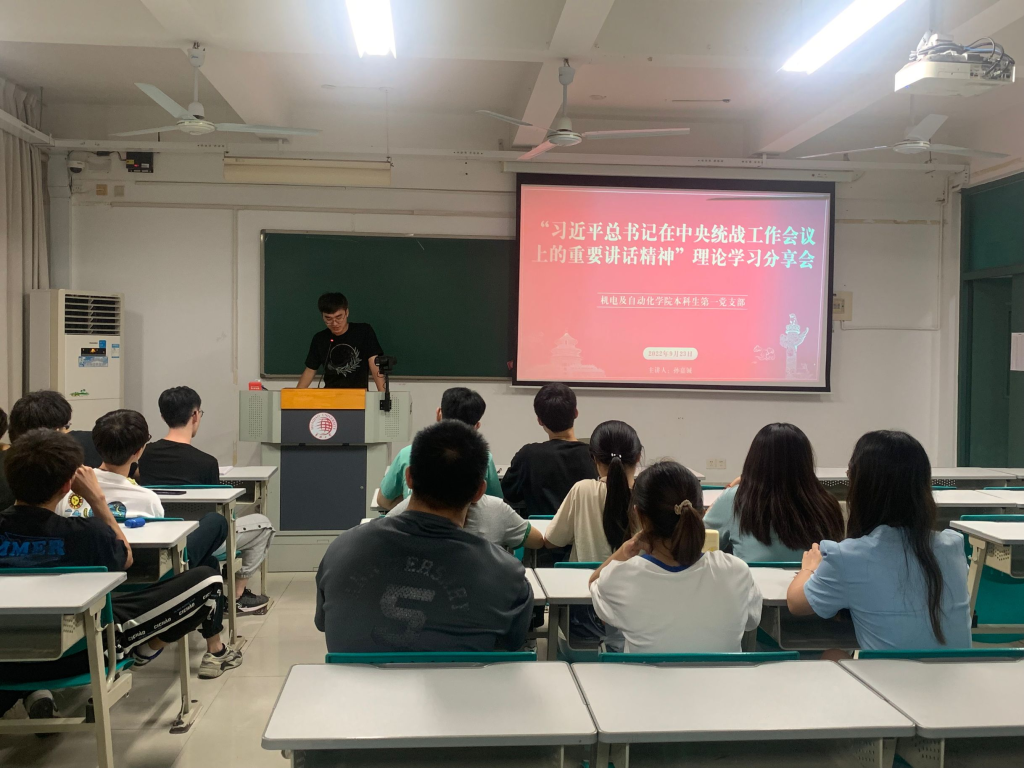 9月23日晚,本科生第一党支部在综合教学楼群C1-302教室举行“习近平总书记在中央统战工作会议上的重要讲话精神”理论学习分享会。活动由支部宣传委员孙嘉铖主持。