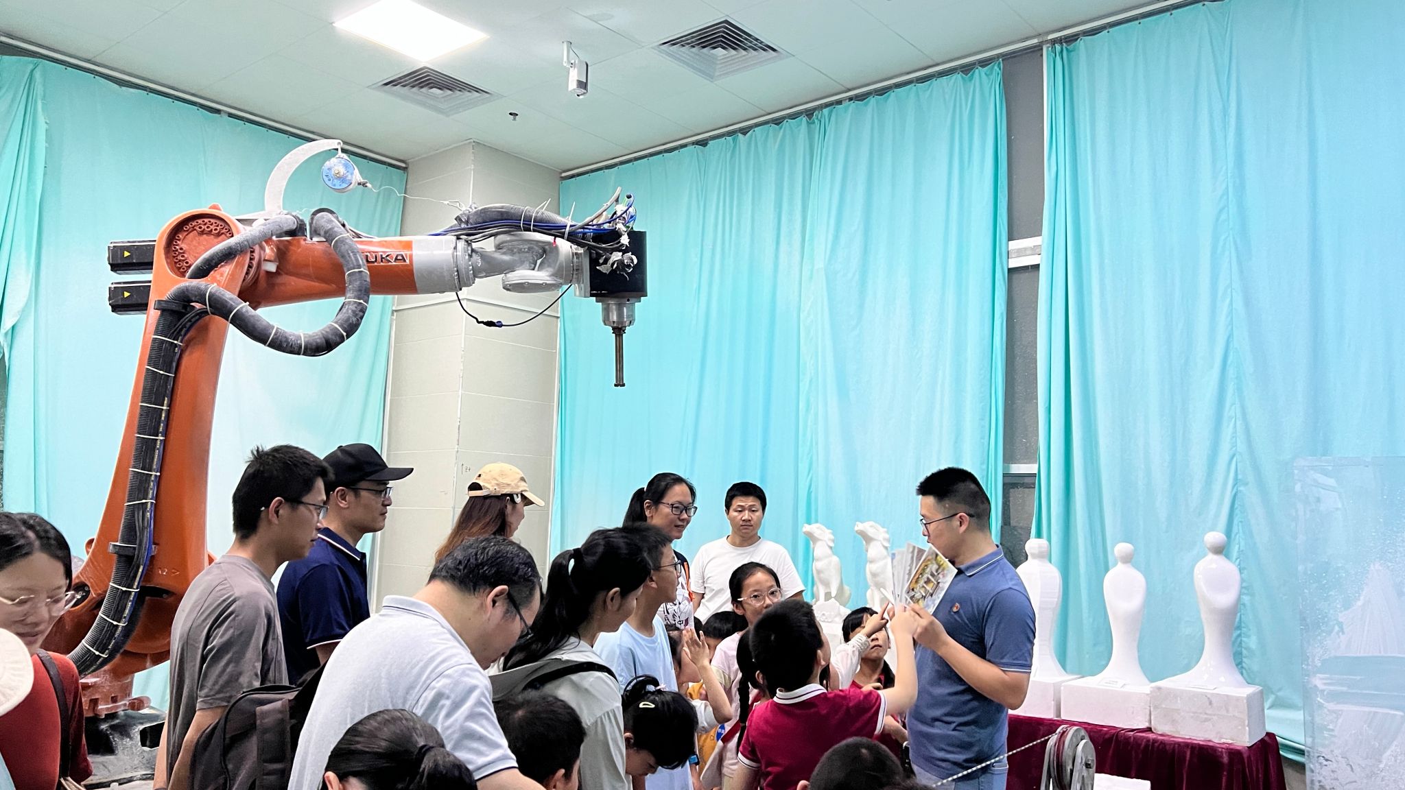 在机电实验大楼制造工程研究院展厅,同学们了解到了高性能工具全国重点实验室(伟德BEVlCTOR1946)近些年的发展和取得的丰硕成就,并通过参观自主研发的装备、工具以及机器人雕刻石像等,直观体验科技的奇妙,深受震撼;在显微观察室,同学们通过各种显微镜感受“被放大的世界”,看到了日常生活中看不到的奇妙世界;在制造工程研究院科创作品展厅,同学们近距离接触仿生水母机器人、管道清理机器人、青蛙机器人和水果采摘器等科创作品,了解科创作品的来源、灵感和背后的原理,近距离感受科技的奇妙之处,激发了对科技创新的兴趣;第四站来到工程训练中心,同学们亲自动手拓印图案,体验蛋雕艺术的精美,了解3D打印的过程,感受激光创意剪纸的魅力,通过沉浸式的实践体验到了传统文化和现代科技的激情碰撞,受益匪浅。此外,同学们还听取科普报告《永远的追光者》,学习和传承王大珩先生的科学家精神。