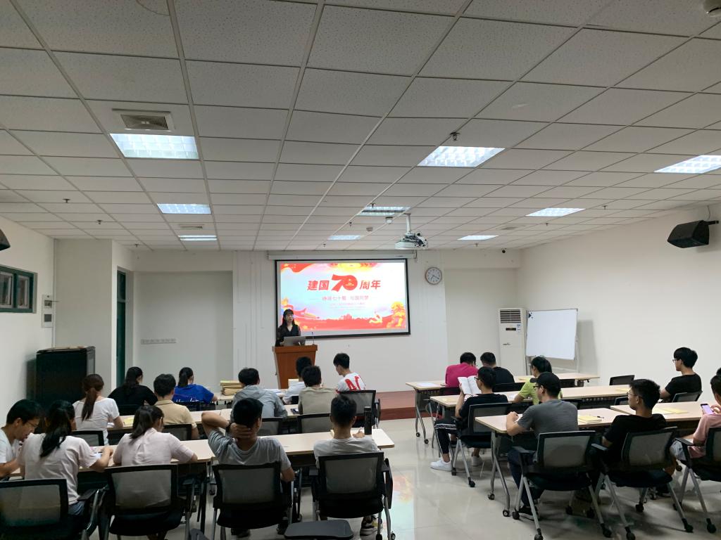 为祝福祖国70周年华诞,感受中国人民70周年奋斗历程,增强民族自豪感和向心力,9月30日,伟德国际1946官网研究生第一党支部在机电信息大楼B247,结合自身实际情况,开展庆祝中华人民共和国成立70周年座谈会活动,展现支部良好精神风貌,营造积极健康向上的科研氛围。会议由支部书记王阳光主持召开。