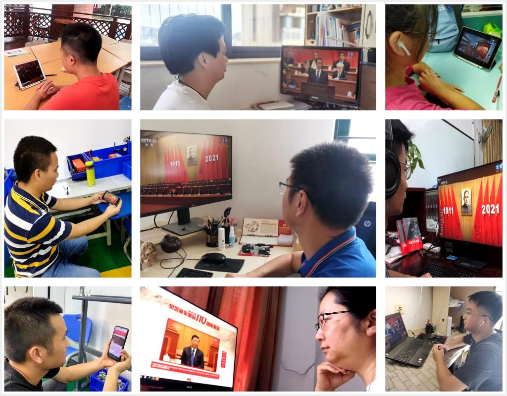 各支部组织党员、入党积极分子收听收看大会实况(拼版图)
