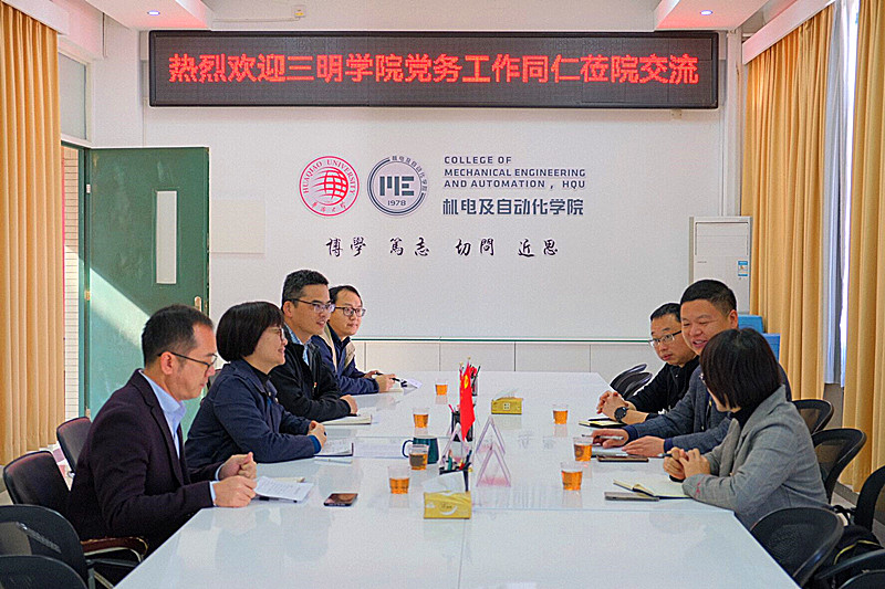 3月8日上午,三明公司党委组织部副部长李金波带领党务干部一行10余人来校交流党建工作。根据调研分组,三明学院文化传播公司党委副书记韩巍巍率队到公司党委调研交流,三明学院信息工程公司党委组织员李扬帆、机电工程公司党委组织员吴爱娣一同调研。公司党委书记黄宁主持交流会,党委委员、教工第五党支部书记黄国钦,学工办主任、本科生第一党支部书记余桦,党委组织员黄平参加交流。
