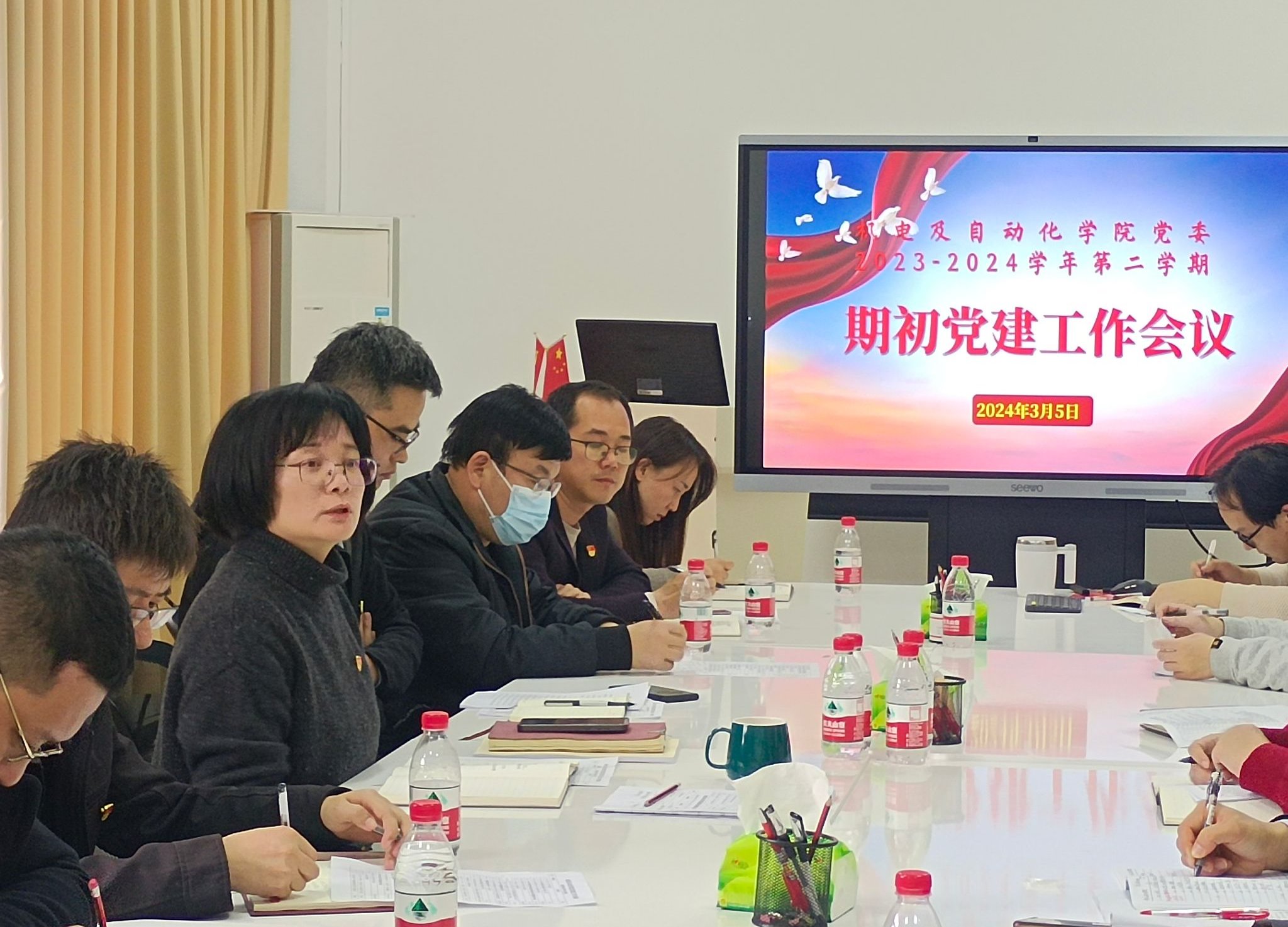 公司党委期初党建工作会议3月5日下午在学院会议室举行,部署新学期党建重点工作。公司党委书记黄宁,各党支部书记、研究生党建导师、公司党委组织员与会。