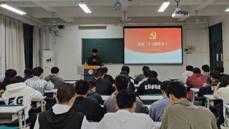 12月6日晚,研究生第六党支部在综合教学楼群C1-401教室,面向2022级研究生智能制造2班、3班全体同学开展党的二十大精神专题宣讲活动。活动由支部副书记兰惠杰主持。