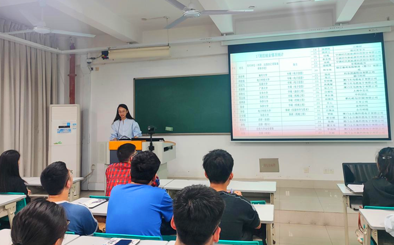 分享中,江安娜就保研准备阶段、推免条件及综合评分过程进行讲解,强调要注重大学阶段过程积累;赵纪飞、陈宗昊就考研的学校选择、专业确定、学习经验以及心态调整作分享;陈希结合自身实际,对院校调剂的经验进行总结;张云、张锦、林凯分别分享了求职经历,对行业选择、简历制作、面试经验等作了详细介绍。