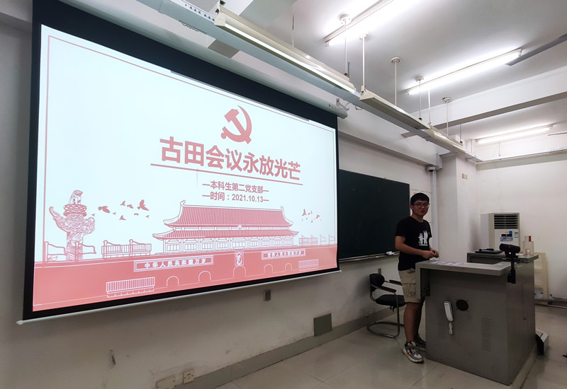 10日13日上午,本科生第二党支部在综合教学楼群C3-203教室举行“古田会议永放光芒”新生党史教育课,支部党员孟祥隆主讲。