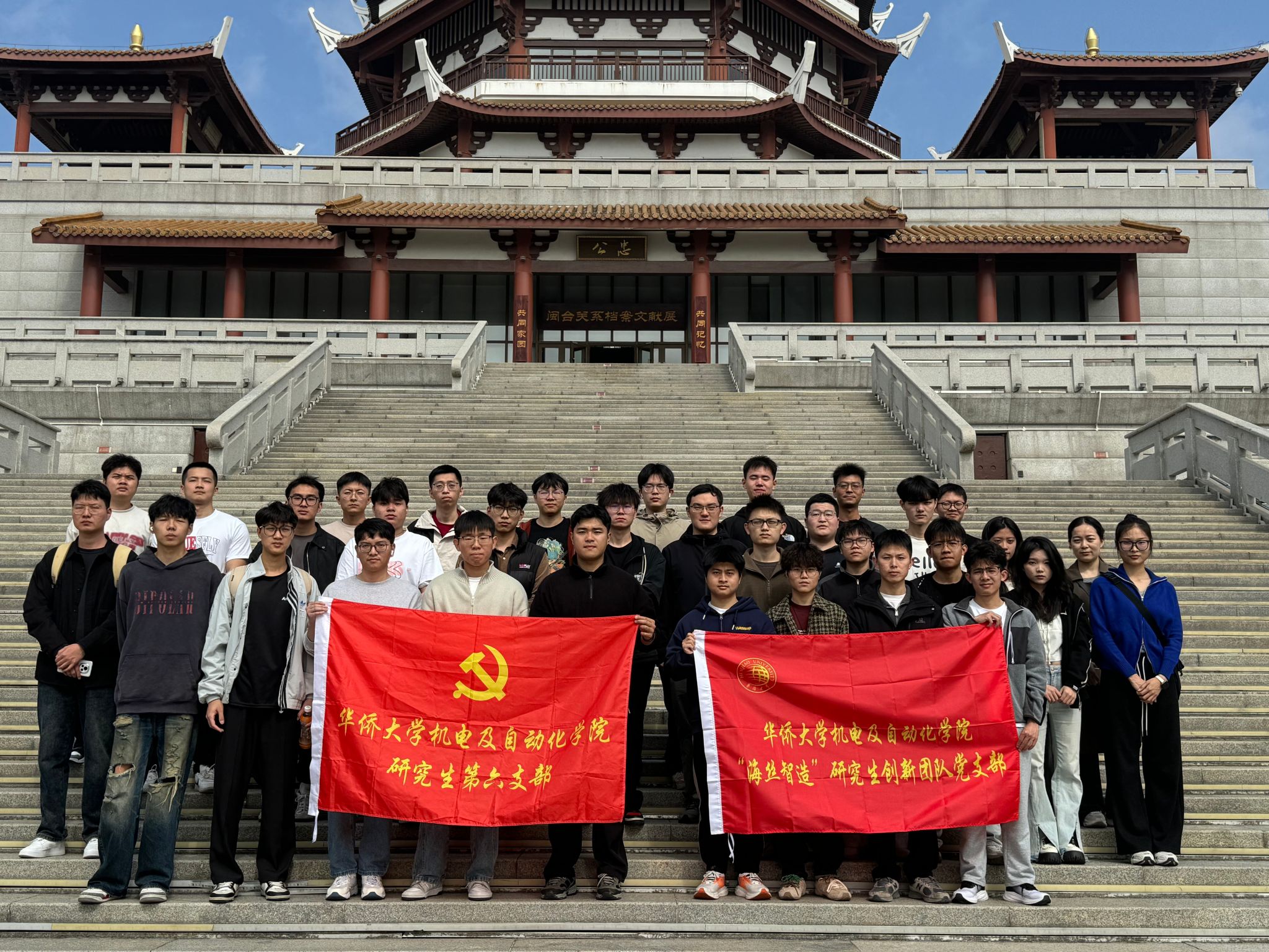 研究生第六党支部、“海丝智造”研究生创新团队党支部党员、入党积极分子在集美塔前合影