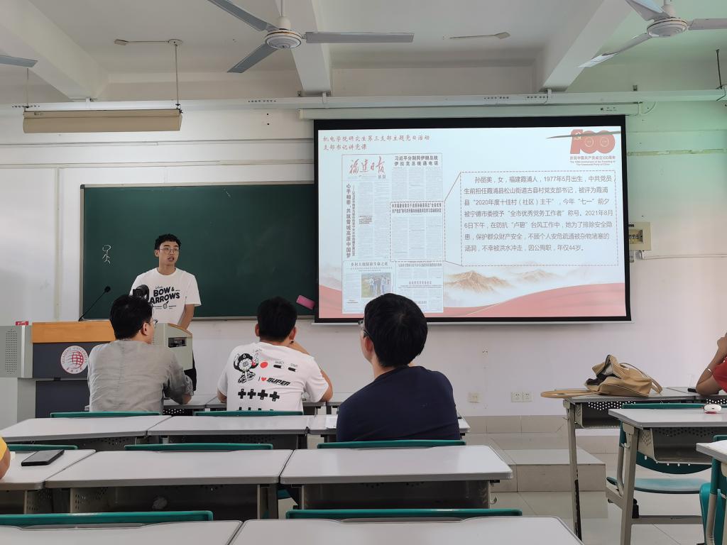 9月9日下午,研究生第三党支部在综合教学楼群C1-302教室开展“向全省优秀党员孙丽美同志学习”主题党日活动。