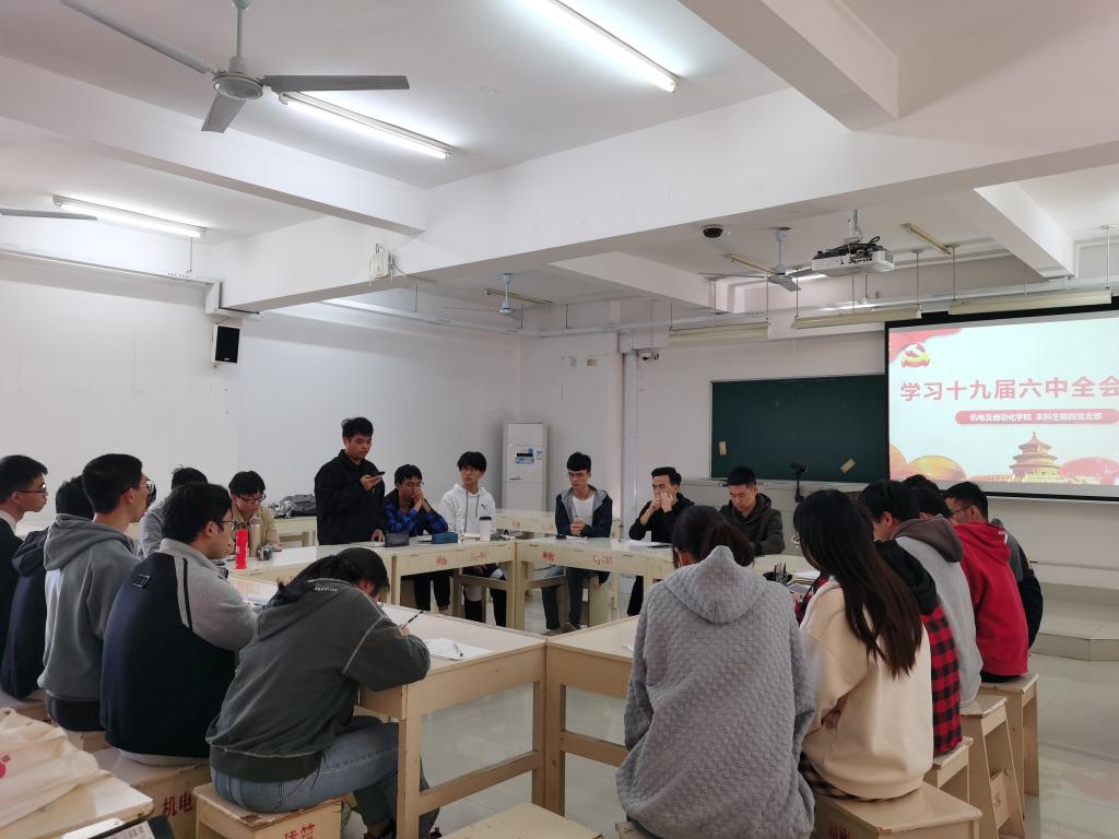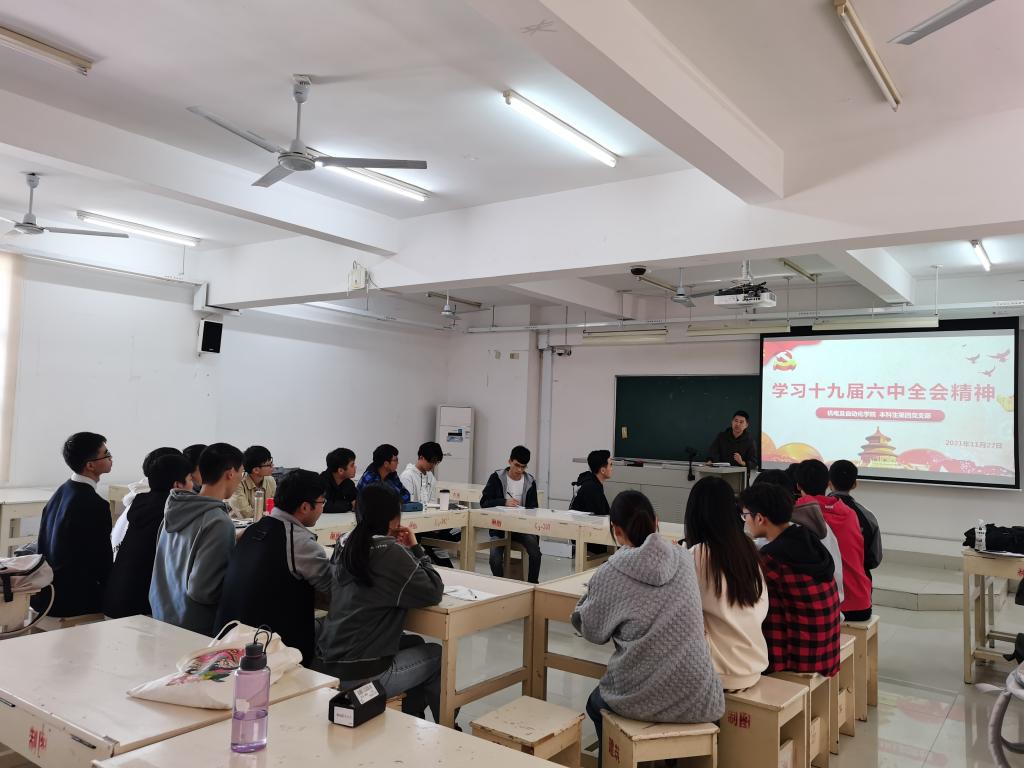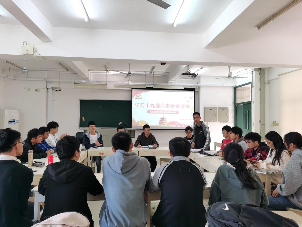 11月27日下午,本科生第四党支部在综合教学楼群C3-301教室举行“学习党的十九届六中全会精神”主题党日活动,支部全体党员参会。