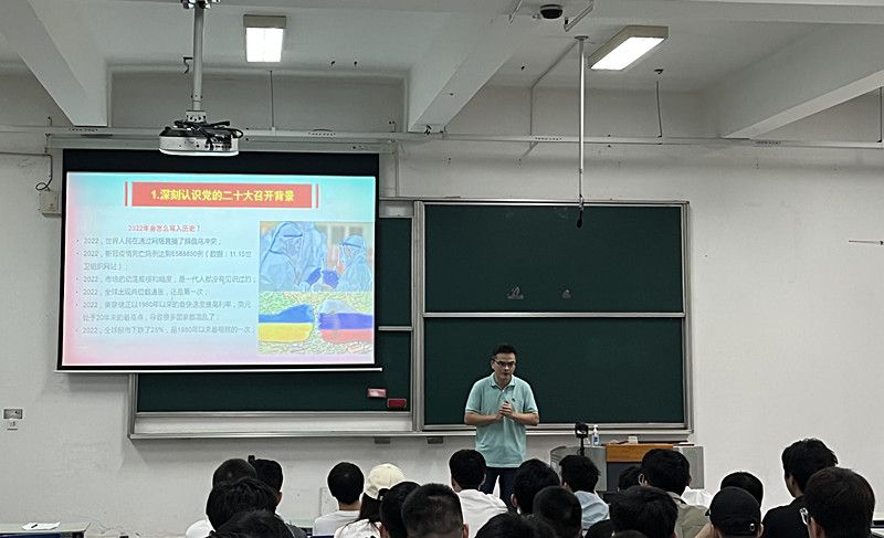 根据公司党委统一安排,11月22日下午,公司党委委员黄国钦教授以“学习贯彻党的二十大精神,弘扬科学家精神,筑牢高水平科技自立自强的思想基础”为题,在综合教学楼群E4-201教室面向研究生第五、第六、第七党支部的全体党员及入党积极分子作党的二十大精神专题宣讲。