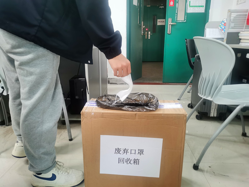 疫情就是命令,防控就是责任。支部第一时间行动起来,落实环境卫生要求,在楼栋显眼处张贴疫情防控警示标语。同时指定专人负责,由党员志愿者带头对研究生工作室和实验室,重点针对实验室地板、拉门把手、垃圾投放区域、楼道扶手等地点展开常态化精准消杀。为最大限度避免口罩乱扔现象,支部还推动废弃口罩回收活动,在每个工作室设置废弃口罩专用收集箱,并安排党员志愿者定期集中处理。