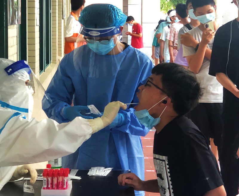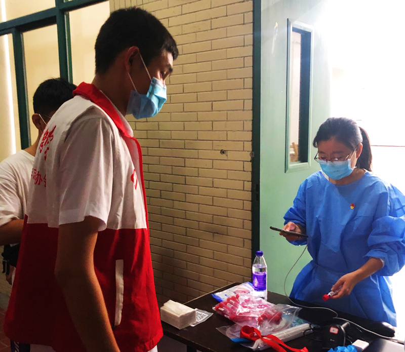 9月20日下午在厦门校区综合教学楼群核酸检测现场,伟德国际1946官网几位研究生党员正在参与全员核酸检测志愿服务。负责维持秩序的郑伟杰、胡佳兴,都是21级硕士研究生党员。“在看到志愿活动的通知后,我们第一时间报了名,希望能为疫情防控尽一份绵薄之力”,他们表示,在此次活动中感受到了学校对疫情防控的重视,和全体党员对参加志愿活动的积极性。
