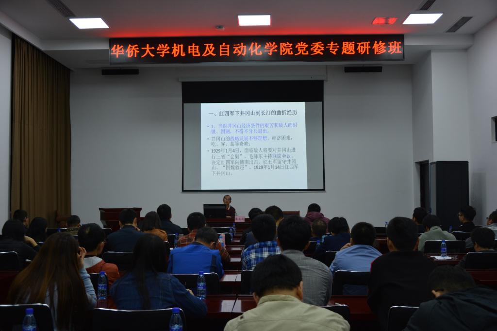 期间,廖其成副教授为同志们作题为“古田会议决议历史回顾及启示”的专题讲座,廖教授从闽西苏区的系列运动讲到古田会议的召开,并由此分析了古田会议的启示与思想政治教育的重要性,令大家受益匪浅。通过此次专题研修班,让同志们心灵得到了洗礼。不仅体会到了我党建立之初的诸多不易,感受到了革命先辈们的艰苦朴素,也更加懂得群众的力量是巨大的,更加坚定了共产主义的远大理想和为实现中华民族伟大复兴的中国梦而努力奋斗的信念,激励全体党员同志在今后的学习工作中,以先辈们为榜样,发挥党员的模范带头作用,艰苦奋斗,努力拼搏,践行全心全意为人民服务的宗旨,为学院建设发展,为祖国复兴人民幸福多做贡献。