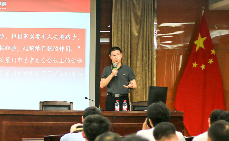 7月4日下午,伟德国际1946官网经理、党委副书记黄辉教授为硕士研究生讲授主题教育专题党课。党课在郑年锦图书馆二楼报告厅举行,由学院研究生会承办,学院团委书记崔敬岩主持,包括党员、入党积极分子等在内的150余名2022级硕士研究生与会听取党课。