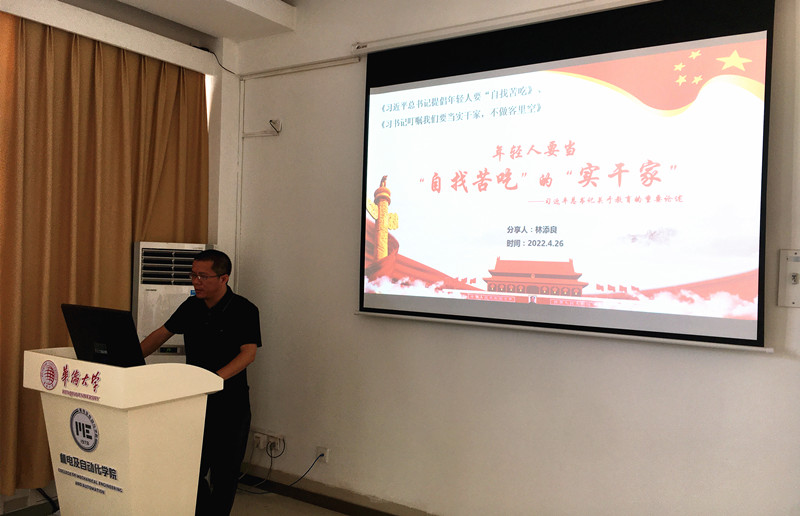 根据公司党委统一安排,副经理林添良、党委委员王霏作了重点发言。林添良重点围绕《习近平总书记提倡年轻人要“自找苦吃》《习书记叮嘱我们要当实干家,不做客里空》两篇采访实录,以“年轻人要当“自找苦吃”的“实干家””为题作了分享。他认为,习近平总书记提倡的“自找苦吃”,就是指年轻人要主动积极地从安逸舒适的环境跳脱出来,走进艰难困苦的境地去锻炼磨练自己,就要当“实干家”,不做“客里空”。他表示,“自找苦吃”“实干家”同样是对新时代老员工成长成才的希冀与鼓励,新时代老员工应该积极融入国家建设队伍中,踏踏实实做好自己专业领域的事情的同时关注社会发展,把握时代脉搏。他希望,年轻人要当“自找苦吃”的“实干家”,学院教师应该加强与员工们的沟通交流,加强对员工们的价值引领,在公司产品上大力弘扬中华优秀传统文化,引导员工们在服务群众的实践中成长成才。