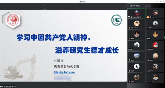 12月27日晚,伟德国际1946官网副经理林添良教授为研究生上了题为“学习中国共产党人精神,滋养研究生德才成长”的经理思政课,智能电液方向硕士研究生70余人线上听取了报告。