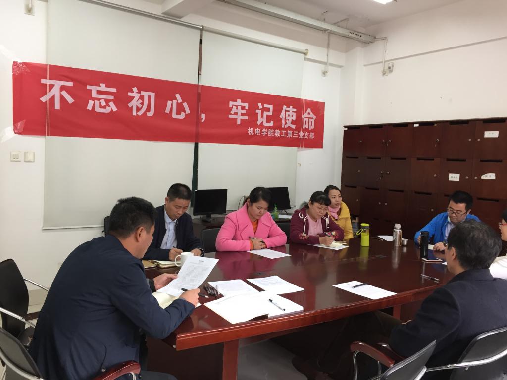 12月10日,伟德国际1946官网教工第三党支部专题组织生活会暨2019年度民主评议党员会在厦门校区教学楼C4-307召开。会议由党支部书记黄身桂主持,学院党委委员刘斌到会指导。