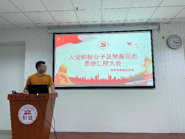 为加强支部预备党员、入党积极分子与党员之间的交流,掌握支部预备党员与入党积极分子近期的学习和生活情况,10月4日上午,研究生第四党支部在机电信息大楼B247举行预备党员、入党积极分子思想汇报会。会议由支部书记汤莉莉主持,全体党员、入党积极分子与会。